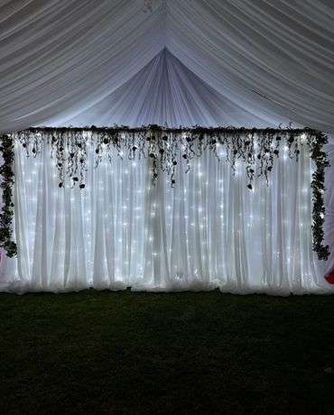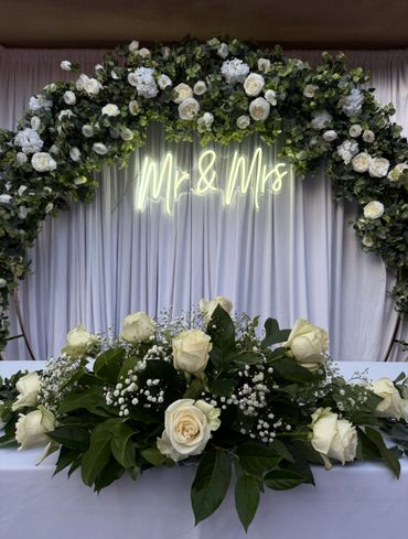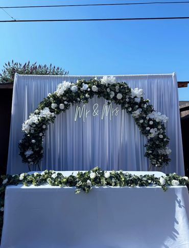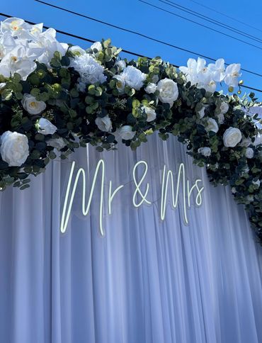 Drape | Floral arch | Neon sign | Main Table